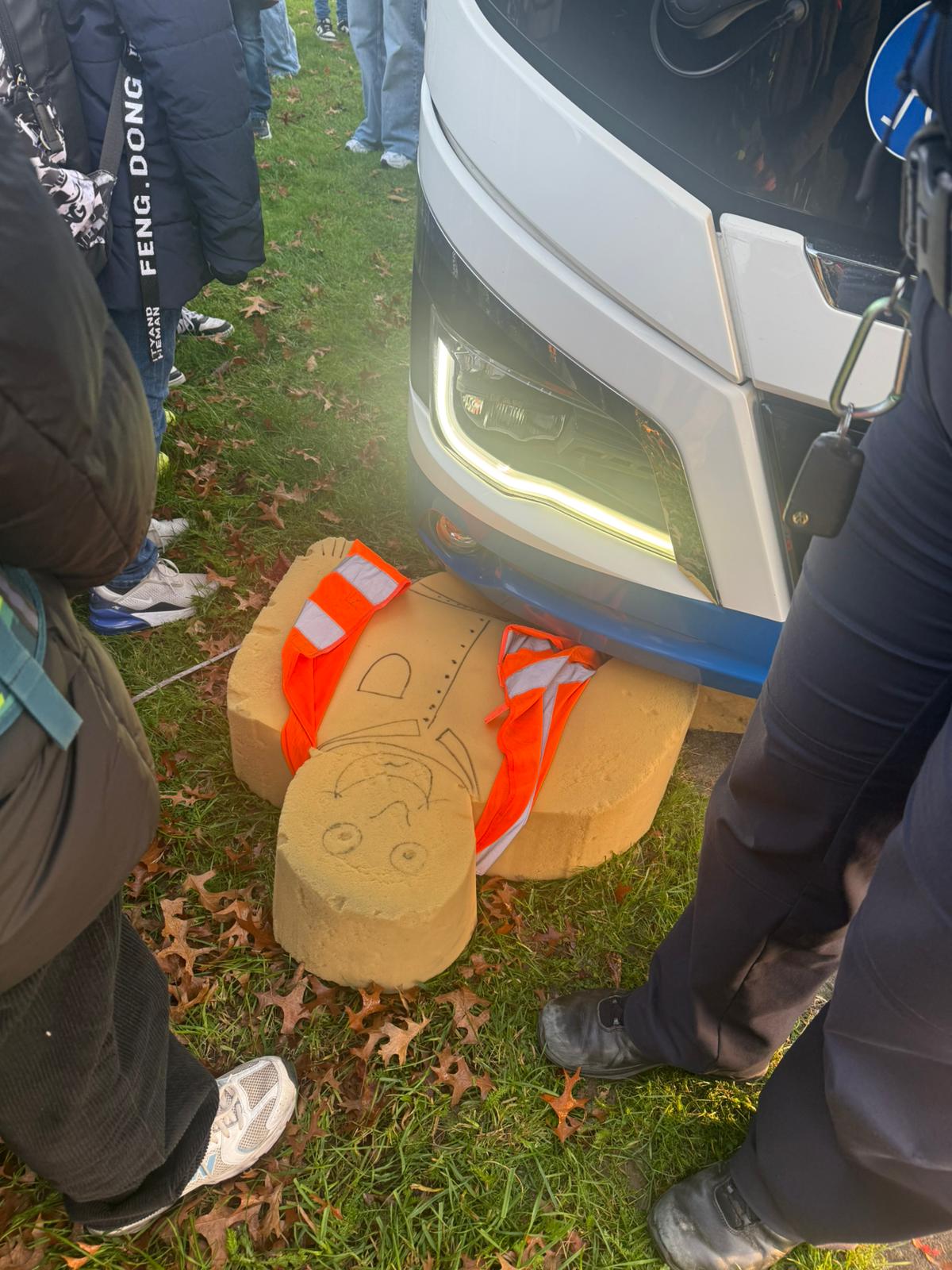 Besonders eindrucksvoll war die Demonstration einer Gefahrenbremsung. Der Bus beschleunigte kurz – und dann kam der plötzliche Stopp. Wer nicht richtig stand oder sich nicht gut festhielt, merkte sofort, wie schnell es gefährlich werden kann. Dieses Erlebnis sorgte für viele Aha-Momente und blieb den Schülerinnen und Schülern nachhaltig im Gedächtnis.